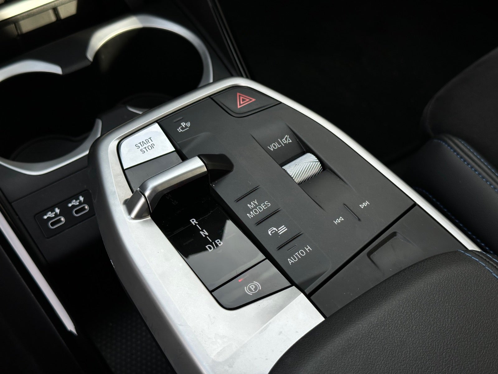 Interiør: Alcantara/Vegansk kombination – sort med blå kontrastsyninger